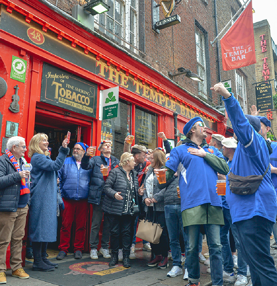 La capitale Irlandaise a toujours été la destination préférée des supporters du XV de France et pour cause ! Un proverbe local donne le ton : « la terre irlandaise absorbe la pluie comme les irlandais absorbent whiskey et bière ».